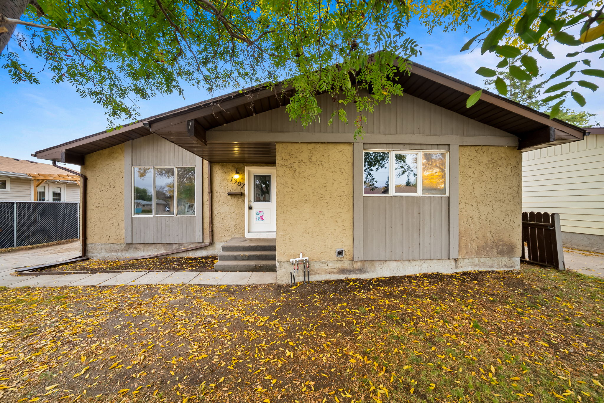 Welcome to 1307 Fleet Street in Regina’s Glencairn Village—an opportunity-filled bungalow with a smart layout, mature lot, and tons of upside. The main floor welcomes you with a bright living room framed by a large picture window, an eat-in U-shaped kitchen, and three comfortable bedrooms including a convenient 2-piece ensuite off the primary, plus a full 4-piece bath. Downstairs adds excellent flexibility: a long rec room for movie nights or play space, a den/home office, a 2-piece bath, and a large laundry/utility room with great storage. A key highlight is the separate rear entry to the basement, creating privacy for guests or extended family and strong income potential for future suite development (buyer to confirm local requirements and permits). Outside, you’ll appreciate the fenced yard with patio and mature trees, plus a double detached garage and an extended driveway for ample off-street parking. The location is close to neighbourhood parks, schools, transit, and east-end amenities, with quick access to Arcola Avenue and Ring Road for commuting. This home needs some TLC—think cosmetic updates and personal touches—but the fundamentals are here: classic bungalow design, full basement with its own entrance, generous lot, and garage. Whether you’re a first-time buyer, multigenerational household, or an investor seeking a value-add project, this is a compelling canvas to make your own.