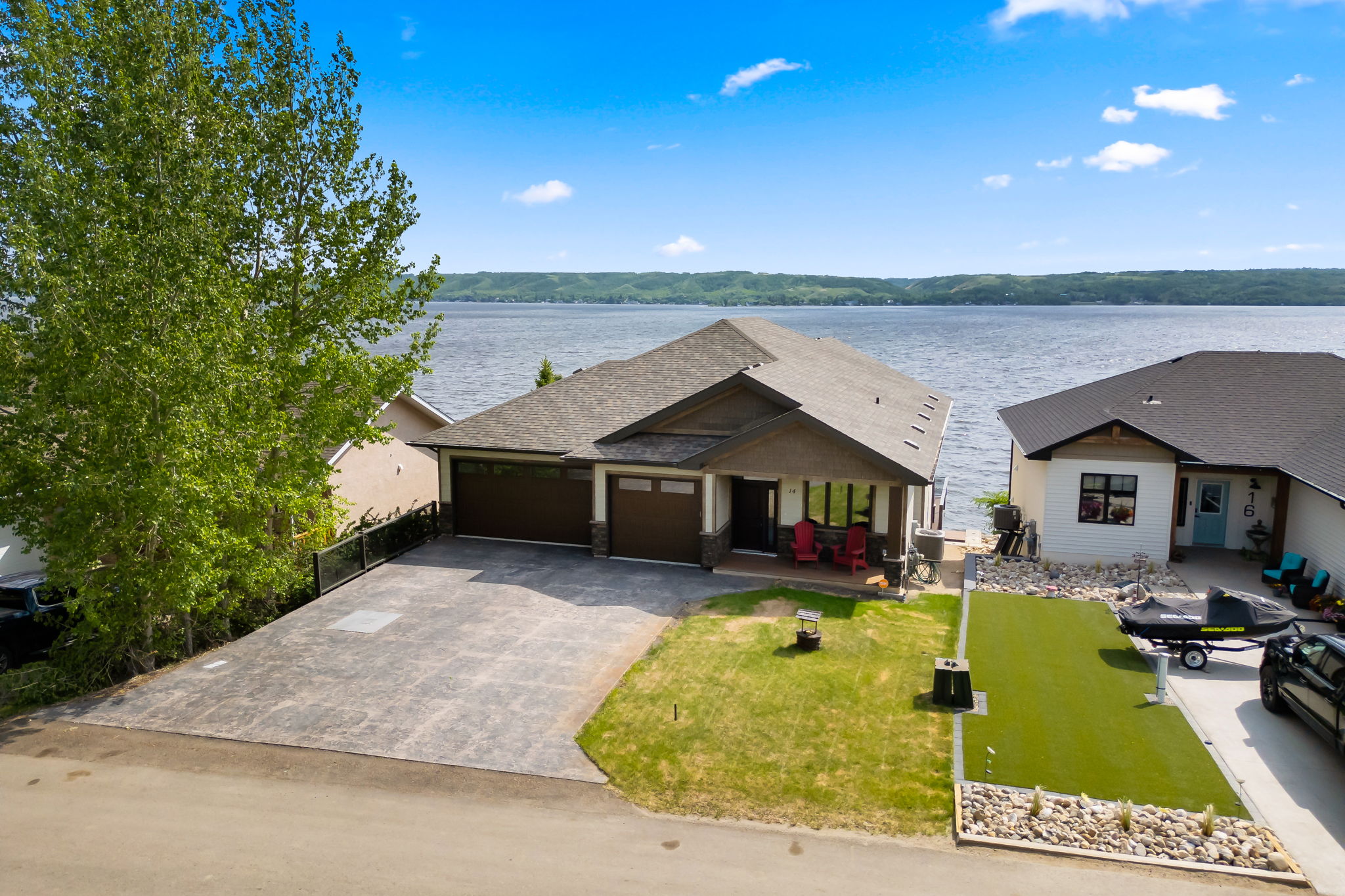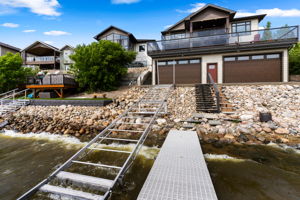 Check out this fabulous custom built walk out bungalow with triple attached garage and huge attached boathouse with absolutely breath taking views of Echo lake in the Quappelle valley . This fabulous home is located on the North Side of Echo lake just 5 minute drive on paved roads from Fort Quappelle. Step into this gorgeous home and automatically notice the high end quality materials used for construction including solid wood interior doors throughout. The open great room has 14ft vaulted ceilings and overlooks the South View to the whole lake. The entertainers custom kitchen is designed with a huge island with raised breakfast bar featuring granite countertops, a large pantry and comes complete with SS Fridge, Stove, Dishwasher and over the range microwave. From this level there is an access to a maintenance free upper deck. The master bedroom is situated off to the side of the dining room and also has panoramic views of the lake. The ensuite has his and her sinks, walk in shower and a large walk through closet with convenient access to laundry room and attached garage. The oversize triple car garage is fully insulated and features infloor heat with a drainage pit. Completing the main floor are two spare bedrooms and a main 4 piece bathroom. The basement of the home has an extra large recreation room with wet bar and has direct access to an absolutely massive deck that is constucted overtop of built in boathouse. 3 more bedrooms with another 4 piece bathroom are also on this level. The large mechanical room has tons of storage with built in shelving. From this level there is also a staircase down to the attached boathouse with its own 3 piece bathroom and storage. The boathouse has two double doors with epoxy floors and a winch with a dolly and rail system which is large enough to accommodate a wake board boat. The shoreline is 80’ and also comes with aluminum docks.