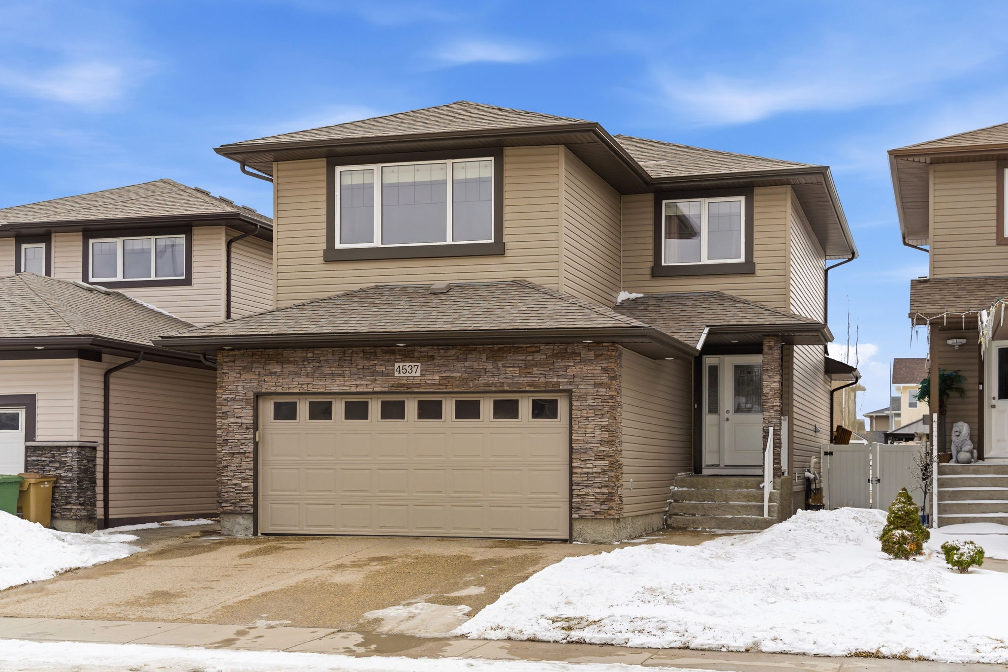 Welcome to 4537 Padwick Road in Harbour Landing—an impressive 2-storey home offering space, comfort, and an unbeatable location backing beautiful green space! This well-maintained property features 1,739 sq ft above grade with a bright and functional open-concept main floor. The spacious living room showcases a cozy gas fireplace and large windows that flood the home with natural light while offering views of the backyard and green space beyond. The kitchen is thoughtfully designed with rich cabinetry, ample counter space, a convenient island, and a dedicated dining area—perfect for family living and entertaining. Upstairs you’ll find a generous bonus room, ideal for a second living area, along with three bedrooms including a comfortable primary suite complete with a 4-piece ensuite. The fully developed basement adds even more versatility with a large recreation room and additional bathroom. Step outside to enjoy the expansive deck, perfect for summer BBQs and outdoor relaxation while taking in the open views with no rear neighbours. The yard is fully fenced and ready for families or pets. Additional highlights include a double attached heated and insulated garage, central air conditioning, and excellent curb appeal. Located in a highly desirable neighbourhood close to parks, schools, shopping, and all Harbour Landing amenities, this home offers the perfect combination of space, function, and exceptional location.