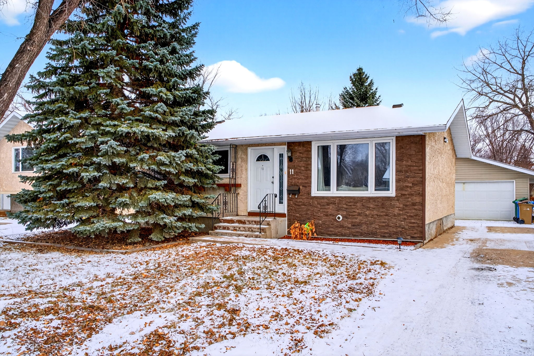 Welcome to 11 Coleman Crescent, a charming and well-maintained bungalow situated in the heart of Glencairn Village. Offering 900 sq ft of comfortable living space, this home is an excellent choice for first-time buyers, downsizers, or investors seeking a solid property in a mature neighbourhood. The bright and inviting living room is highlighted by a large picture window that fills the space with natural light, complemented by updated vinyl plank flooring for a clean, modern look. The eat-in kitchen offers good counter space, practical storage, and plenty of room for a dining table—perfect for everyday meals or hosting friends and family. Down the hall, you’ll find two comfortable bedrooms, including a spacious primary, along with a well-appointed 4-piece bathroom. The unfinished basement provides a blank canvas for future development, whether you envision additional living space, a home gym, or ample storage. Outside, the home sits on a generous 5,715 sq ft lot with front and back lawns, mature shrubs, and a fenced yard that’s ideal for kids or pets. A major highlight is the 24' x 26' double detached garage, offering exceptional parking, workshop potential, and easy vehicle storage through Saskatchewan winters. The concrete driveway provides additional off-street parking. Nestled on a quiet crescent, located close to parks, schools, shopping, and east-end amenities, this home delivers comfort, convenience, and value.