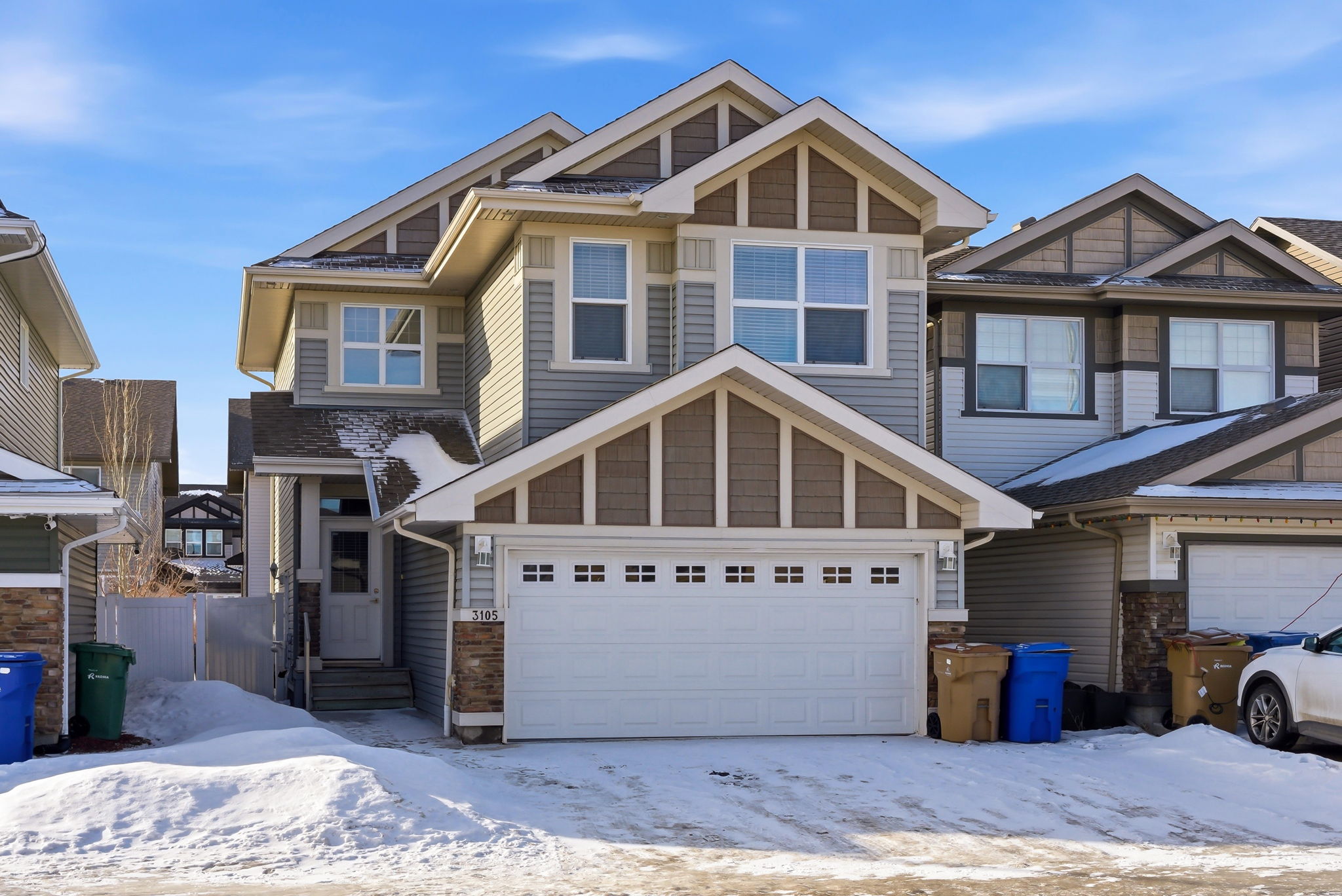 Welcome to this beautifully maintained 2-storey home in the desirable community of Hawkstone! Built in 2012, this spacious property offers 1,656 sq ft above grade with a functional and modern layout perfect for families or investors alike. The main floor features a bright open-concept design with rich hardwood flooring, a stylish kitchen complete with dark cabinetry, tile backsplash, and stainless steel appliances, plus a generous dining area with direct access to the deck—perfect for entertaining. The inviting living room is highlighted by a cozy gas fireplace and large windows that fill the space with natural light. Upstairs, you’ll find 3 well-sized bedrooms including a spacious primary suite with a walk-in closet and 5-piece ensuite. A convenient second-floor laundry room and additional full bathroom complete this level. The fully finished basement offers a non-regulation suite with its own separate entry, featuring a kitchen, living area, bedroom, laundry and bathroom—ideal for extended family or potential rental income. Outside, enjoy a fully fenced backyard with a deck, plus a double attached garage and ample parking with a triple driveway. Located close to parks, schools, and all north-end amenities, this move-in ready home is an excellent opportunity in a sought-after neighborhood.